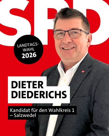 Dieter Diederichs ist unser Landtagskandidat im Wahlkreis 1 – Salzwedel. Dieter ist … Jahre alt und LKW-Fahrer. Zu seinem Wahlkreis gehören die Stadt Arendsee (Altmark) und die Hansestadt Salzwedel sowie die Verbandsgemeinde Beetzendorf-Diesdorf.