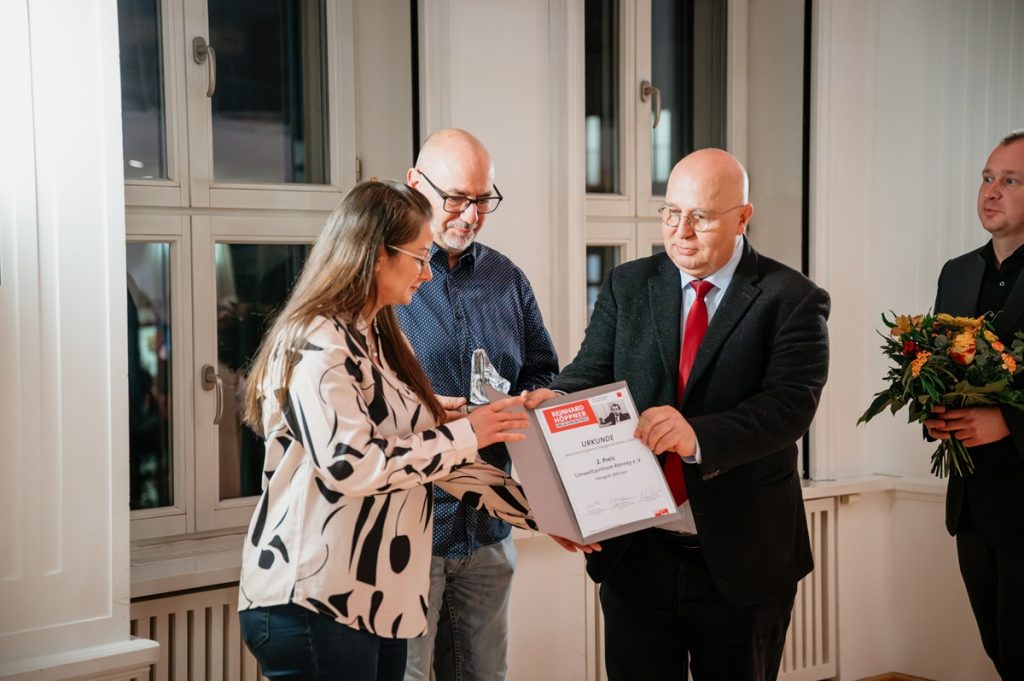 Der zweite Preis würdigte das Umweltzentrum Ronney e.V., eine seit 1986 bestehende Einrichtung im Biosphärenreservat Mittelelbe. Die Engagierten dort machen sichtbar, was im Alltag oft verborgen bleibt: Wie Natur funktioniert, wie Kreisläufe zusammenhängen und warum nachhaltiges Handeln nicht mit Belehrung beginnt, sondern mit Erfahrung. Streuobstwiesen, Auenflächen, ein Bienenhaus, ein Bauern- und ein Kräutergarten – die Anlage ist ein Lernort und kein Schaugelände. Dass das Zentrum trotz zeitweiser gefährdeter Finanzierung weitergemacht hat, zeigt die Beharrlichkeit, die für echte Umweltbildung nötig ist.