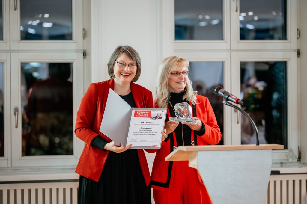 Der Sonderpreis ging an Simone Pareigis aus Halle (Saale). Seit mehr als zwanzig Jahren engagiert sie sich in der Leukämie- und Lymphom-Selbsthilfe, begleitet Betroffene, organisiert Unterstützung, schreibt Informationsmaterialien und bringt als Patientenvertreterin ihre Erfahrung in Fachgremien ein. Ihr Einsatz in der Kältehilfe, im Behindertenbeirat und bei sozialen Initiativen zeugt von einer Haltung, die weit über einzelne Projekte hinausgeht. Die Auszeichnung würdigt ein Engagement, das nicht im Rampenlicht steht, sondern im verlässlichen Arbeiten über Jahrzehnte hinweg entsteht.